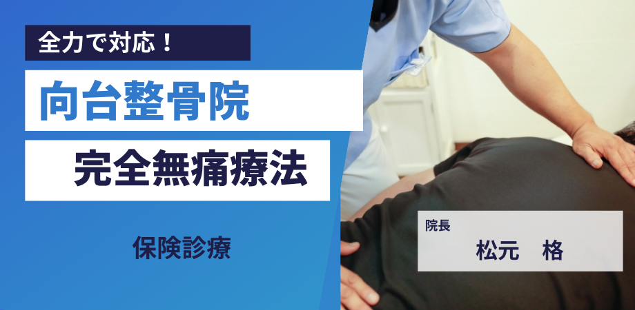 私、院長の松元格は田無出身です。 「地域に根ざしたやさしい整骨院」をモットーにしています。 向台整骨院では、脳の反応を利用した最先端の完全無痛療法です。 根本的な原因から治療します! 特に交通事故(むち打ち・腰痛等)骨折、打撲、脱臼、捻挫の他、スポーツ外傷の治療に適しています。 その痛み、一人で悩まずにぜひご相談ください。 完全無痛療法 初めての方でも安心して受診していただけます アクセスしやすい立地 はなバス 第3ルート5番「市民公園前」徒歩0分
